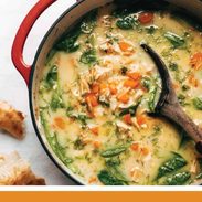This is similar to Greek Lemon Chicken Soup aka Avgolemono, but has spinach, carrots, onions, and dill.