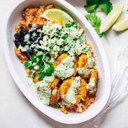 • Part 3: I just couldn’t leave the Brazilian Burrito theme alone, so once the house stopped smelling like an overly chocolatey mole sauce fail zone, I decided to try again. This time with a **tried and true** sauce that you may remember from these shrimp tacos. Also: arranged in an actual container from Chipotle because it’s not ever going to be a REAL burrito bowl without one.